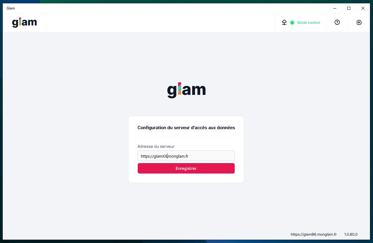 Dès que vous arrivez sur cet écran, renseignez l'adresse de connexion de votre Glam (exemple : https://glamXX.monglam.fr).