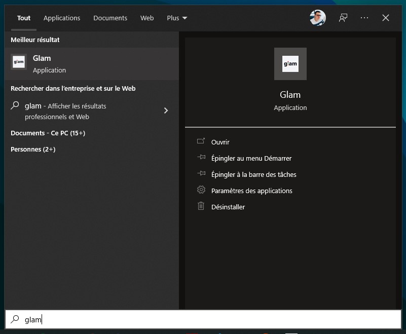 Il suffit de lancer le menu démarrer Windows et d’utiliser le moteur de recherche en tapant "Glam".